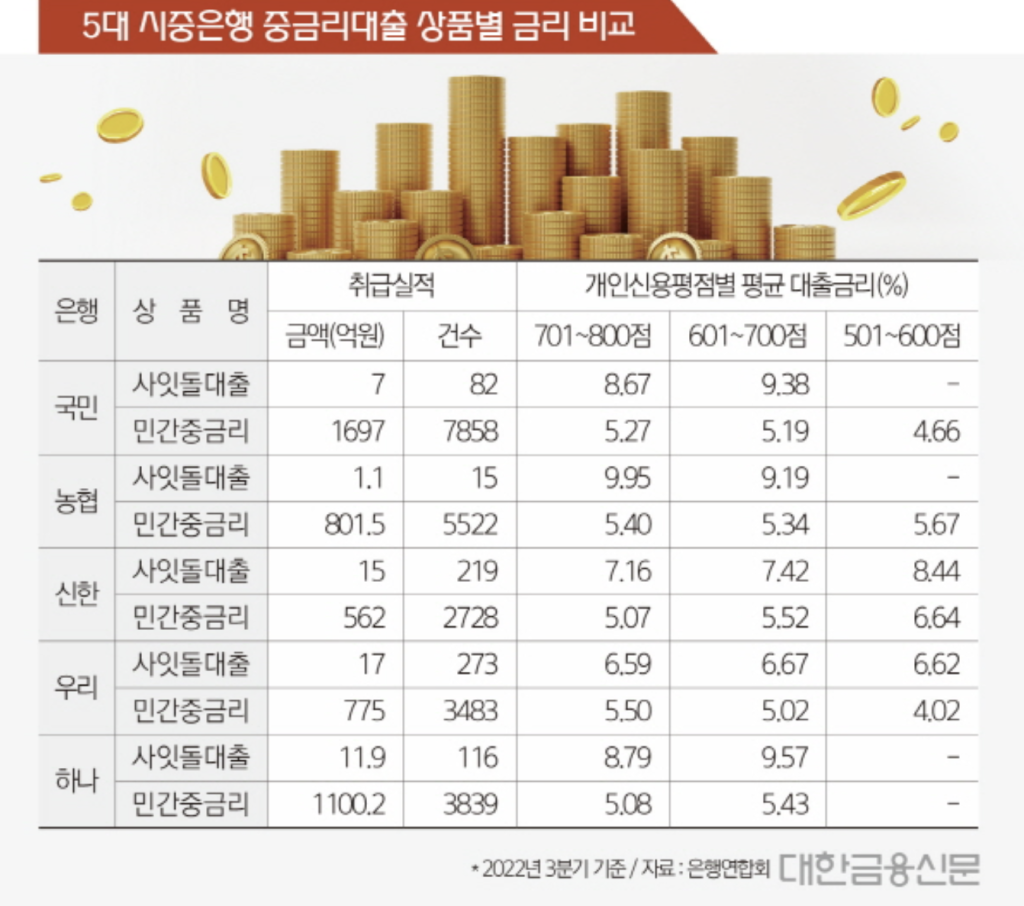 중신용자를 위한 대표적인 중금리 정책 금융상품인 사잇돌 대출은 은행권과 상호금융권에서 모두 취급하고 있으며, 특히 신용점수 관리가 정말 중요한 상황입니다.